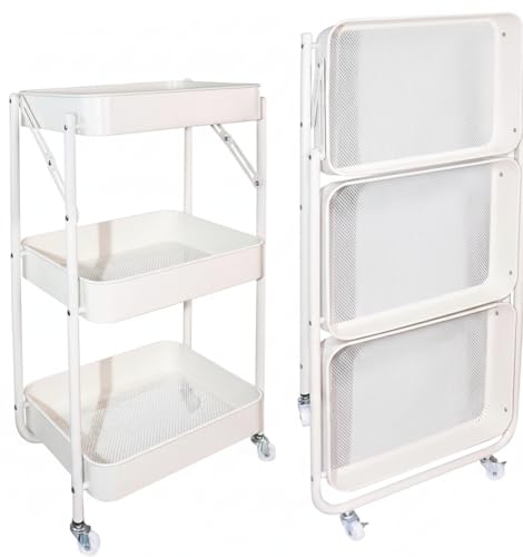 Generic - 3-Tier Rolling Storage Rack - Versatile Organizer with Strong Legs (White)