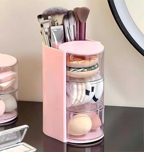 - The rotating design allows a full 180-degree turn, enabling quick and effortless access to makeup sponges, cotton swabs, hair clips, and beauty tools without rummaging, saving valuable time during your daily routine and enhancing efficiency on your vanity table.