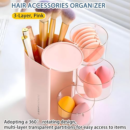 Generic - 3-Tier Rotating Accessory Organizer for Hair & Makeup - Stores Brushes, Rings, Earrings, Necklaces, Bracelets, Hairpins, and Clips in Elegant Multi-Color Finish