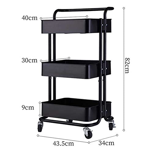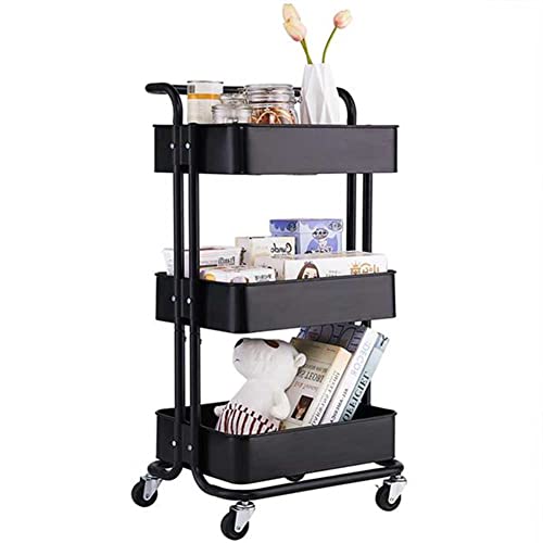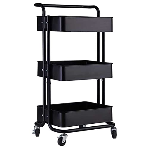 BEONE - رف تخزين من 3 طبقات مع عجلات ومقبض للمطبخ والحمام المنزلي، وحدة أرفف بي ون بـ 3 رفوف تخزين للمطبخ (3 طبقات مع عجلات ومقبض، أسود)