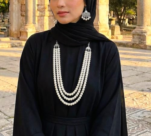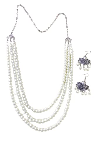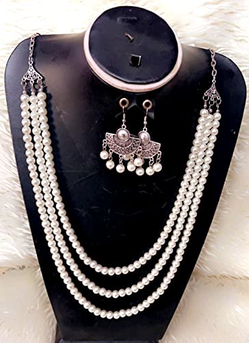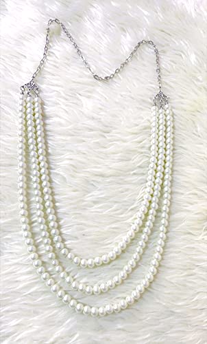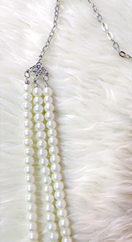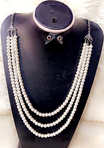 Generic - 3 Tier White Lolly Long Collet with 2 Large Pendant (Earring Gift) and Chain Length Control for Gifts