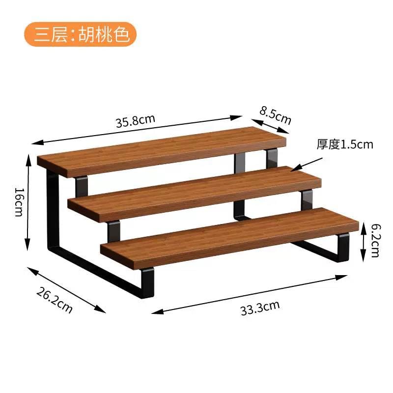 - تصميم متدرج: رف خشبي أنيق بأربعة مستويات مع إطار معدني أسود، مثالي للعرض والتخزين