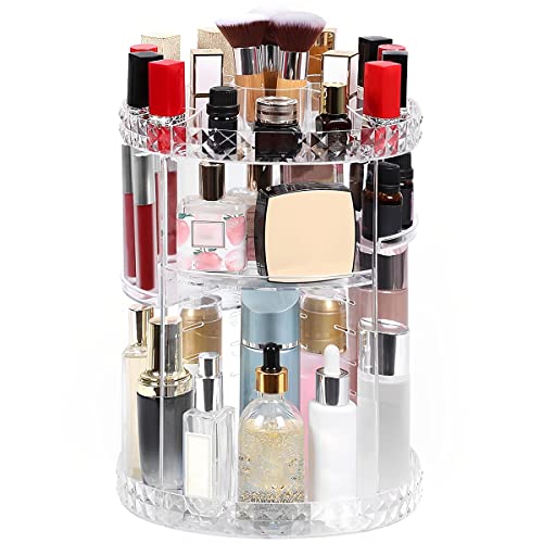 - 🌈【360° Rotatable Makeup Organizer】With a 360° rotating design, it will be convenient to get the needed skincare products. And the tires are designed at a proper height to fit all sizes, making it place and fetch all your cosmetics and makeup products in seconds.