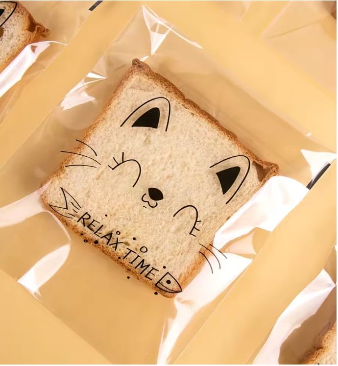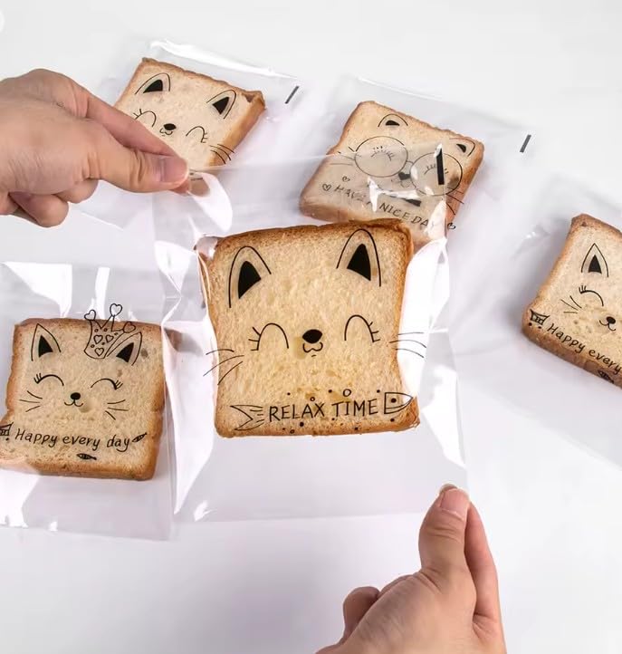 Generic - أكياس تغليف شفافة ذاتية الغلق بتصميم القط اللطيف، للحلويات والخبز والسندوتشات، مناسبة للمناسبات والأعياد - عبوة = 30 قطعة