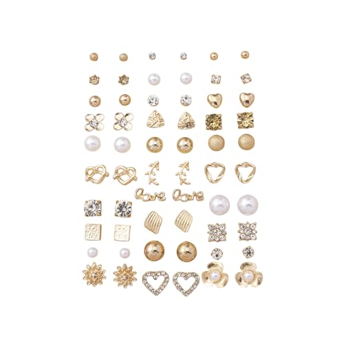 FRIDAYIN - 30 Pairs New Fashion Earrings Combination Set Pearl Flower Rhinestones Metal Geometric Earrings Advanced All-match Style