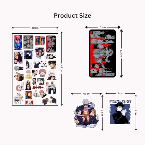 - [30 قطعة من تصميمات الرسوم المتحركة الحصرية] ارفع مستوى معداتك مع 30 ملصقًا شفافًا فريدًا وعالي الجودة يتميز بشخصيات جوجوتسو كايسن المفضلة لدى المعجبين، بما في ذلك ساتورو جوجو ويوجي ايتادوري وميغومي فوشيغورو ونوبارا كوجيساكي وريومين سوكونا.