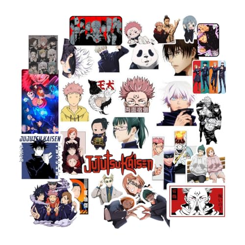 Scentiment - مجموعة ملصقات انيمي جوجوتسو كايسن من 30 قطعة، ملصقات شفافة مقاومة للماء تتضمن جوجو وايتادوري وسوكونا للابتوب وزجاجة المياه وحافظة الجوال ولوح التزلج والامتعة، هدية للمراهقين واوتاكوس