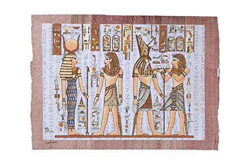 generic - 30 x 40cm - Glow in the Dark pharaoh Ramses II making offerings to Goddess Isis & Horus papyrus- Ancient Egyptian Scene with Queen Nefertiti,3 pyramids and king Tutankhamen Glow in the dark