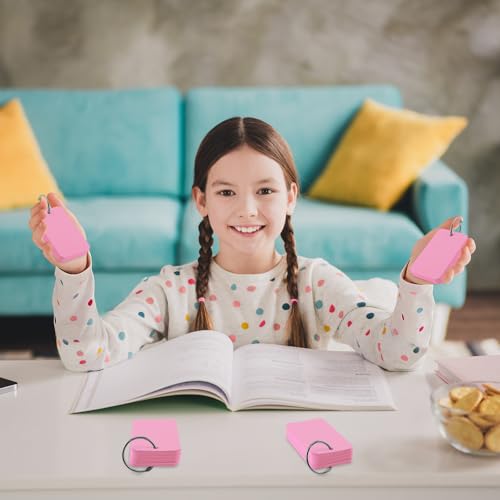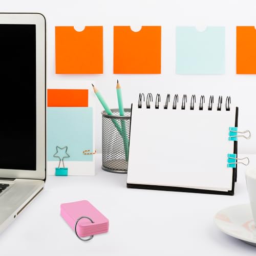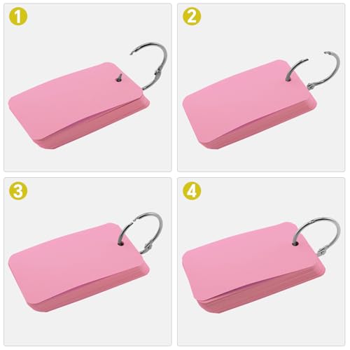 CAOXIAOXUYAO - 300-Pack Colored Index Cards, 2" x 3.5" Blank Flash Cards with Metal Ring for Studying, Vocabulary, Memos, Bookmark & Greetings (Pink)