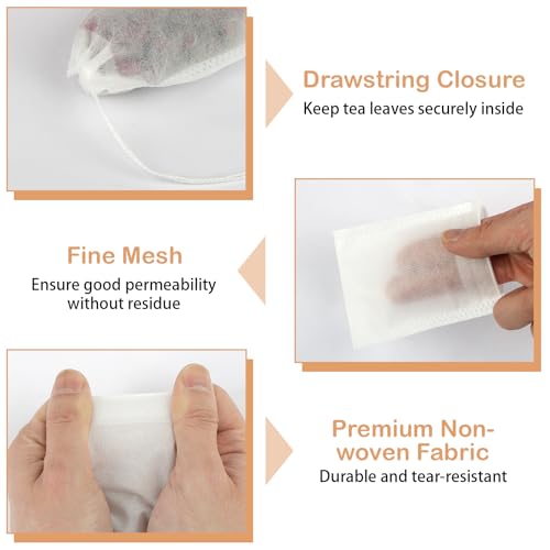 - Drawstring Design: Each tea bag features a secure drawstring that makes filling, sealing, and removing easy, effectively prevent loose tea leaves or fine particles from escaping into their drinks