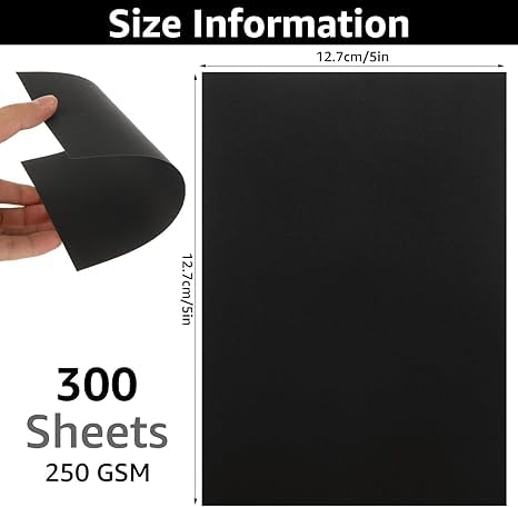 Generic - ورق مقوى أسود مقاس 12.7 × 17.78 سم ووزن 250 جرام لكل متر مربع، ورق تصميمات البناء أسود فارغ لبطاقات الحرف اليدوية والدعوات ومستلزمات سجل القصاصات وبطاقات العمل، 300 ورقة