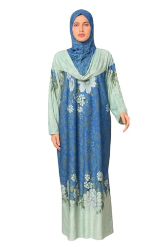 Generic - إسدال صلاة أنيق 3016 بتصميم قصة مستقيمة ونقشة زهور مع طرحة متناسقة من كيان للتجارة والتوزيع (أزرق وأخضر وأبيض، اكس اكس لارج)