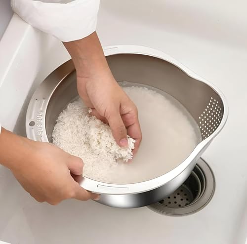 - 【High Quality Material】The rice filters are made of premium 304 stainless steel and durable to last for repeated daily use, making it the perfect tool for washing and soaking rice, vegetables, fruits and legumes without heat or shocking, with a fine finish that adds practical elegance to the kitchen and ensures long-term performance.