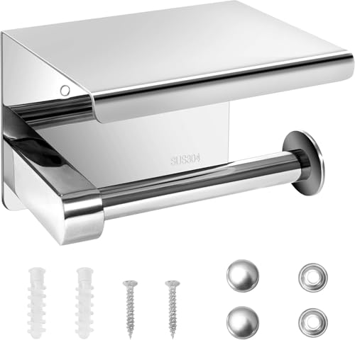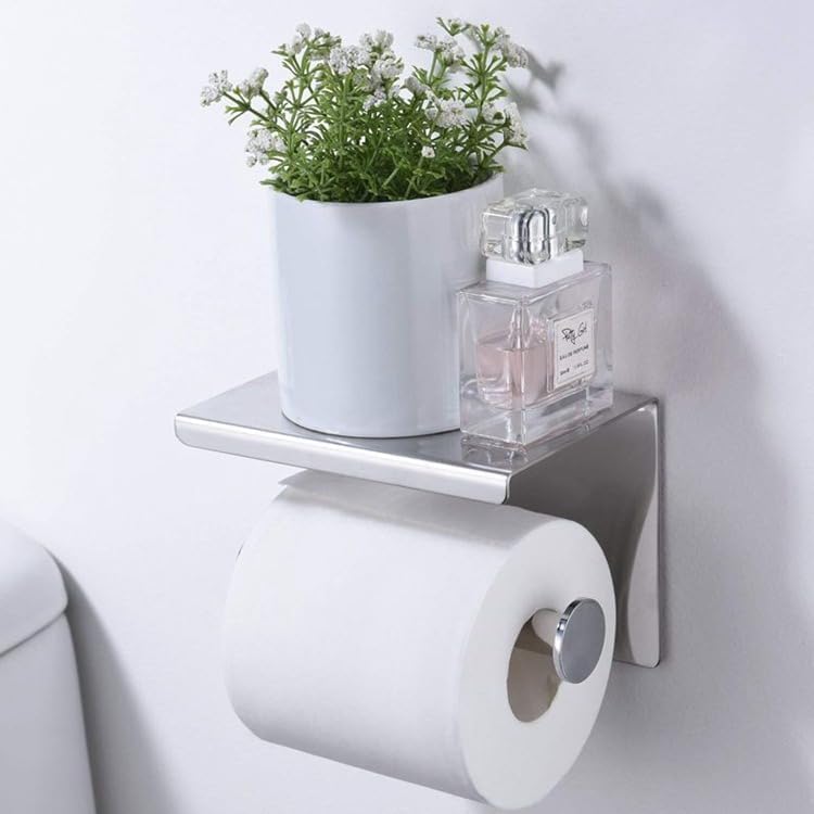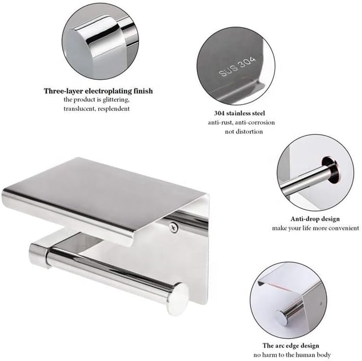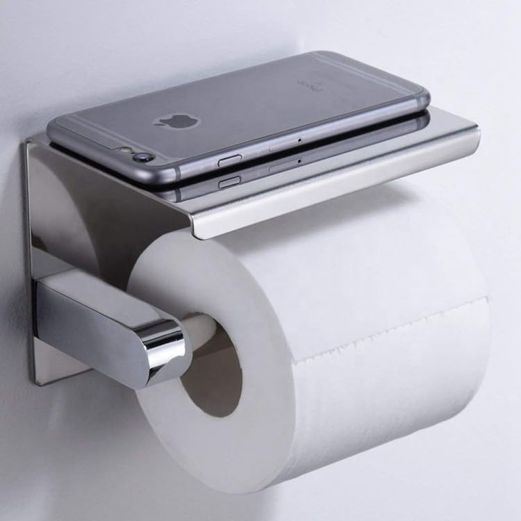 Generic - حامل مناديل حمام من الستانلس ستيل 304 مع رف موبايل – مثبت على الحائط، مقاوم للصدأ، تصميم عملي وأنيق للحمام والمطبخ (فضى)
