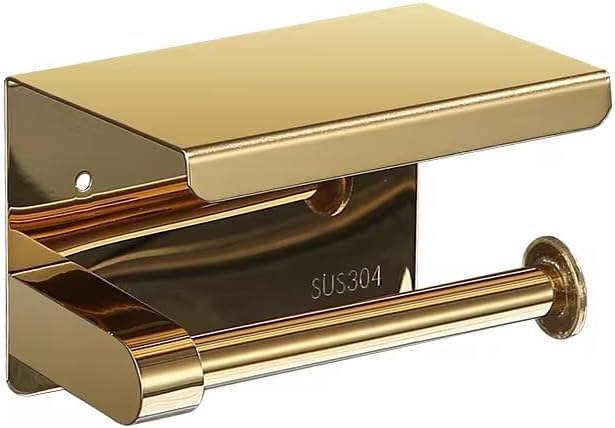 Generic - 304 Stainless Steel Toilet Paper Holder with Shelf High Quality Gold
