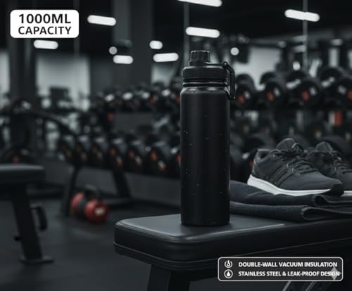 - 5. سعة كبيرة ومتعددة الاستخدامات (1000 مل): السعة الكبيرة تجعلها الخيار الأمثل للرياضيين، طلاب الجامعات، العاملين في المكاتب، وأثناء السفر والرحلات. متينة ومصممة لتحمل الاستخدام اليومي القاسي.