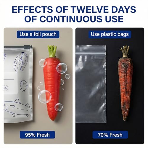 - حل عملي للتخزين: مصممة بثلاثة أحجام مختلفة لاستيعاب احتياجات تخزين الطعام المختلفة؛ يمكن استخدام شنط الفويل الألومنيوم للفواكه والخضروات واللحوم وبقايا الطعام؛ يجعلها تصميمها المرن مثالية لتنظيم الفريزر والثلاجة والمخزن.
