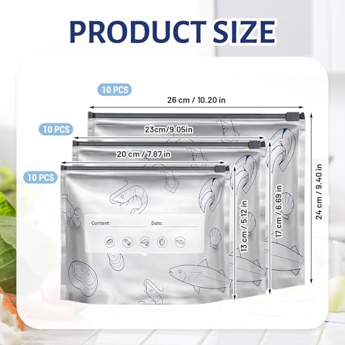 TUBAWD - شنط تجميد من الألومنيوم، شنط تخزين قابلة للغلق من الفويل الألومنيوم قابلة لإعادة الاستخدام، تطيل من نضارة المواد سريعة التلف، تنظيم تخزين الطعام بالجملة، ثلاثة أحجام طقم من ثلاثين قطعة