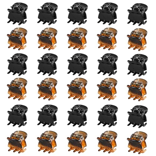 Aestustheri - 30 قطعة من مشابك الشعر الصغيرة للنساء - مشابك شعر صغيرة - اكسسوارات شعر بلاستيكية غير قابلة للانزلاق للنساء والفتيات (اسود، بني)