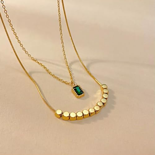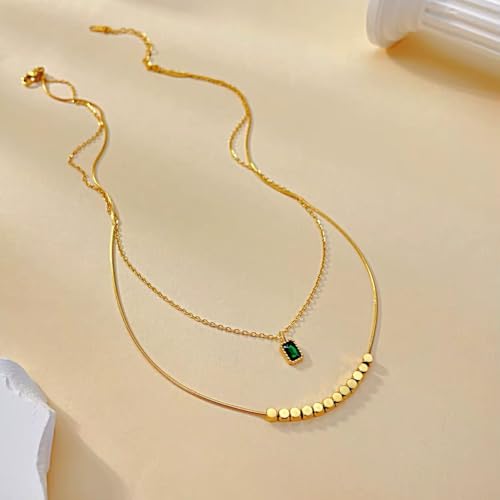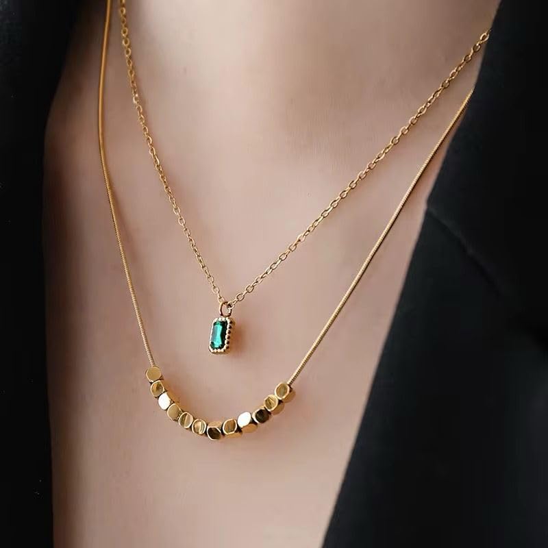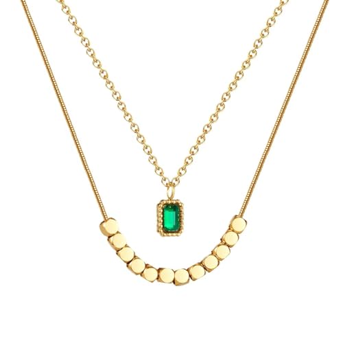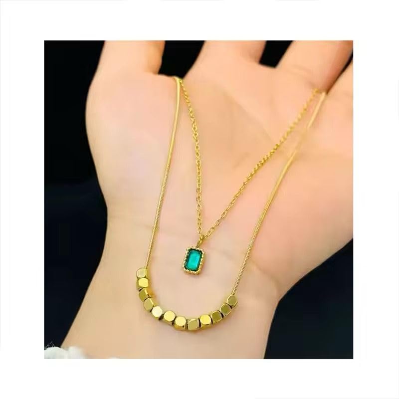 Generic - سلسله للنساء من الاستانلس ستيل 316 l مطليه بالذهب اتنين دور بفص اخضر زركوني