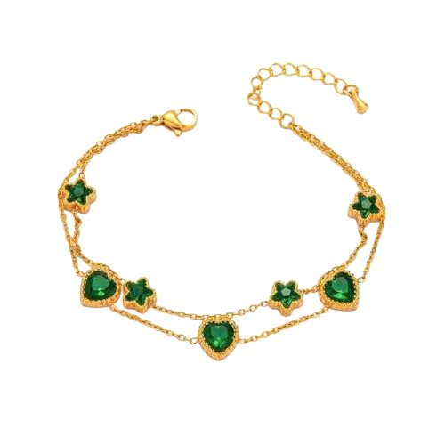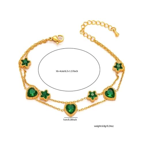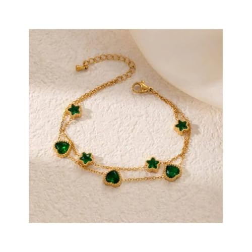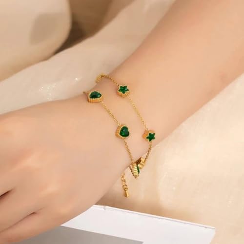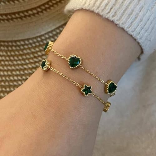 Generic - 316L Stainless Steel Zircon Star Heart Square Shape Bracelet For Women Delicate Temperament Jewelry Gifts