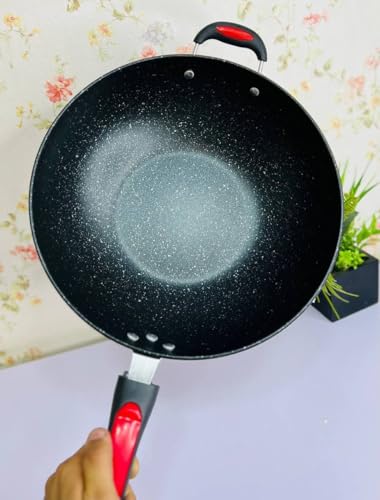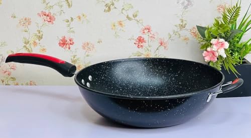 Generic - طاسة قلي جرانيت للمحترفين في الطبخ، طاسة قلي بمقاس كبير للغاية 32 سم، طاسة قلي عملية بمقبض خشب ممتاز وتصميم مذهل بسمك 16 مل