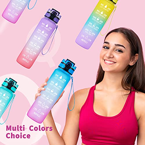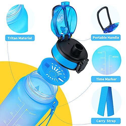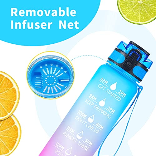 Qimofinee - 32 oz Motivational Water Bottle with Time Marker & Removable Strainer, Fast Flow Leakproof Non-Toxic BPA Free 1L Sports Water Bottle for Fitness, Office Gym Workout