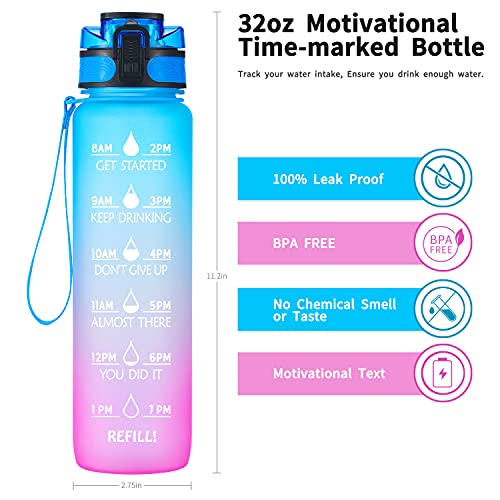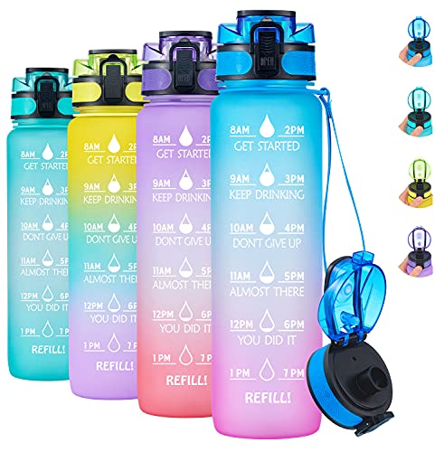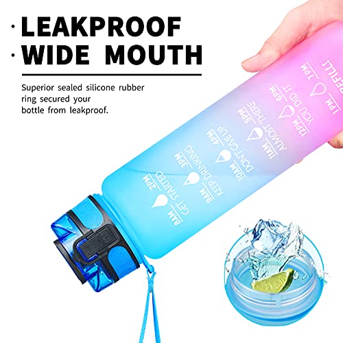 - 【Motivational Quote & Time Marker】-With unique inspirational quote and time marker on it,our marked water bottles with times to drink is great for measuring your daily intake of water,reminding you reach your health and fitness hydration goals.Use perfectly for weight loss, during and after a workout, appetite control, replenish moisture, overall health,hydrate in style.