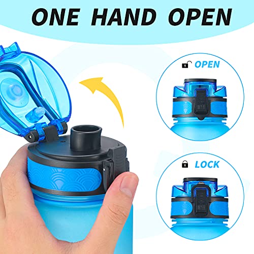 - 【Leakproof & New Funtional Design】-Coming with 32oz large capacity ,the flip top lid is designed with a secure lock , making it dust and leak proof. You can quickly open it with one hand by clicking the button .keep it from opening accidentally, with a food-grade silicone ring to prevent leakage perfectly.
