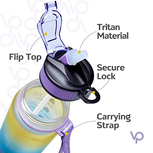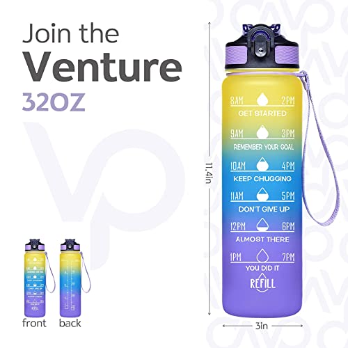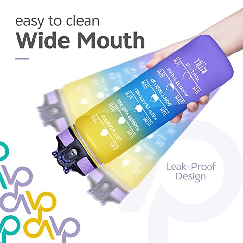 generic - 32oz Motivational Fitness Sports Water Bottle With Time Marker & Straw, Large Wide Mouth Leakproof Durable BPA Free