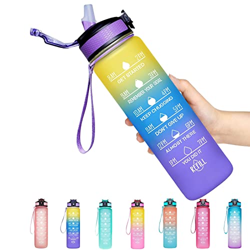 - ¡¾Motivational Quote & Time Marker¡¿With unique inspirational quote and time markers on it,this water bottle is great for measuring your daily intake of water,reminding you stay hydrated and drink enough water throughout the day.A must have for any fitness goals including weight loss,appetite control and overall health.