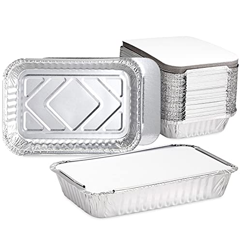 Stockroom Plus - 32oz Takeout Foil Pans with Lids, Aluminum Trays (8.26 x 5.7 x 1.77 In, 50 Pack)