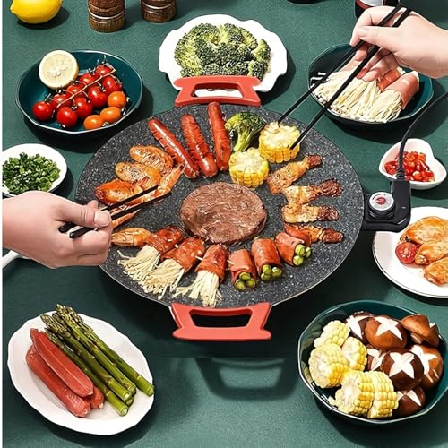 - Multi-Use Versatility: Perfect for cooking a wide range of dishes such as pizza, pancakes, omelets, crepes, and more. Its 34cm large surface area offers ample space for family meals, making it ideal for breakfast, lunch, or dinner.