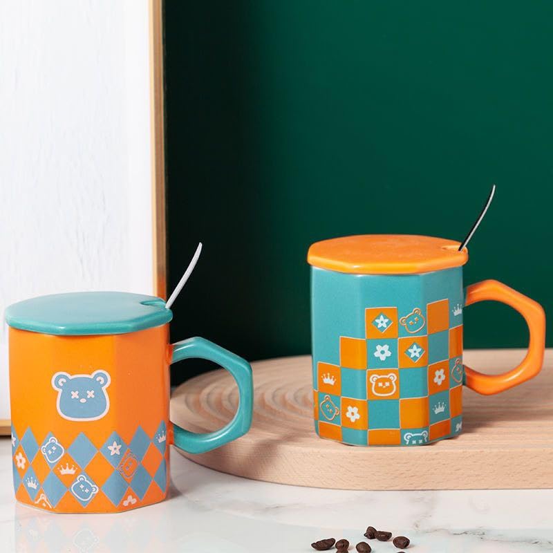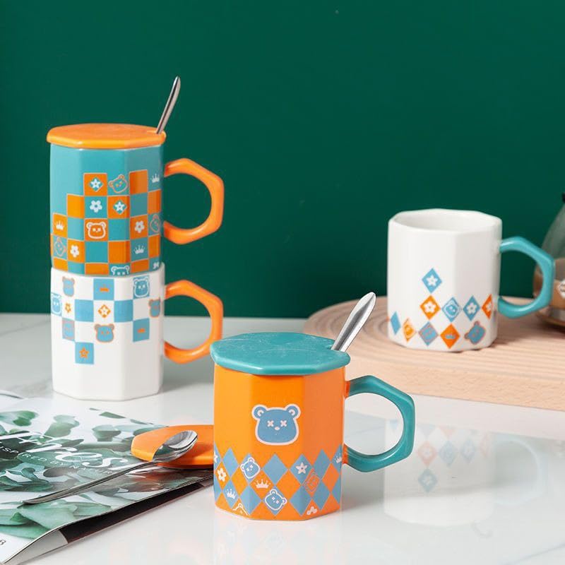 Generic - 350ml Andalusian Porcelain Mug with Lid and Spoon Premium Coffee Tea Cup for Coffee Tea Cold Drinks at Home Cafe