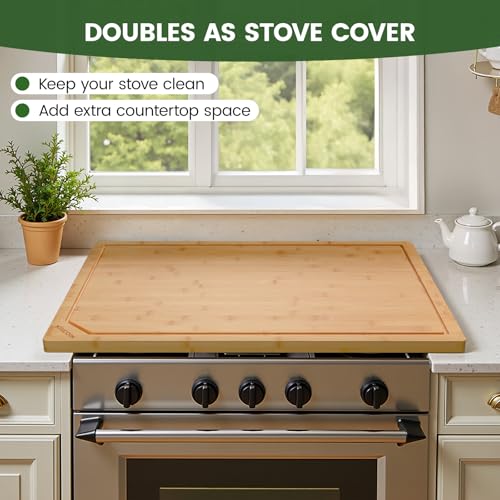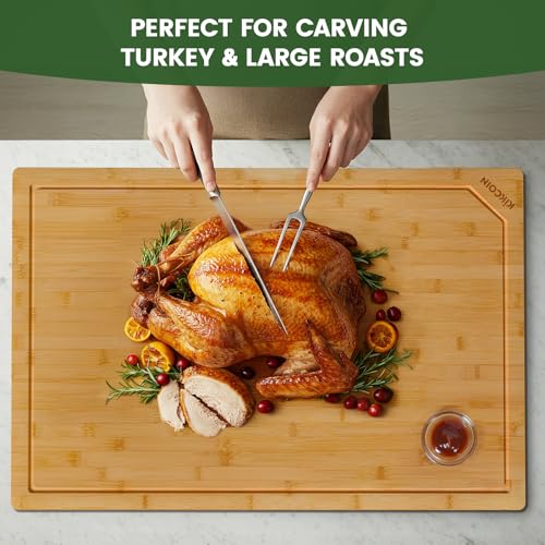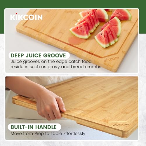 Kikcoin - لوح تقطيع متين كبير للغاية من الخيزران للمطبخ مقاس 91 سم، لوح تقطيع خشب بمجرى عميق للعصير ومقبض، لوح تقطيع يستخدم كغطاء علوي للموقد الكبير من كيكوين، 91 سم × 61 سم