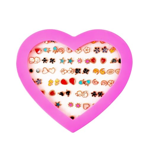 Generic - 36 Pairs Girls Hypoallergenic Stud Earrings Set With Box - Multiple Styles and Sizes PVC Ear Studs - Gift for Women and Girls