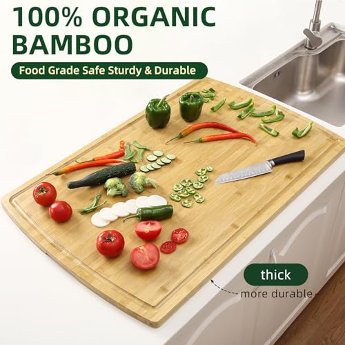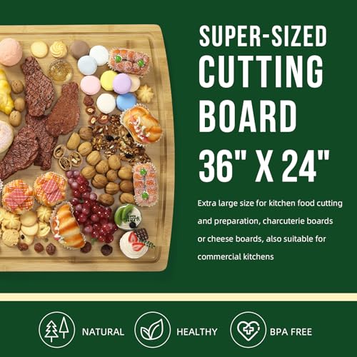 MilleLoom - 36" x 24" Extra Large Bamboo Cutting Board for Kitchen, Wooden Chopping Board with Built-In Deep Juice Groove and Handles, Heavy Duty Butcher Block for Meat Fruits Vegetables Turkey