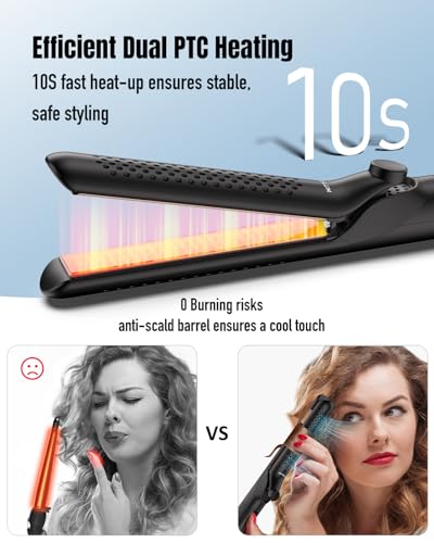 - Effortless Styling - This 2 in1 straightener and curler features dual PTC heating for consistent and even heat, minimizing heat damage. 3D floating plates and an ergonomic grip ensure smooth, easy styling.