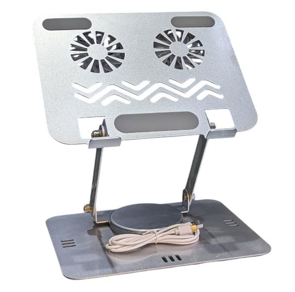 Generic - حامل لابتوب قابل للتعديل 360 درجة مع مروحتين تبريد، موديل L-018، فضي، قاعدة تبريد للكمبيوتر المحمول