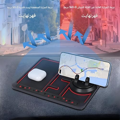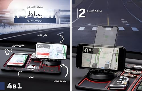 - تجمع سجادة السيارة المضادة للانزلاق 4 في 1 بين الوسادة غير القابلة للانزلاق ولوحة أرقام وقوف السيارات، وحامل هاتف عالمي دوار 360 درجة، ووسادة توزيع العطور، مما يوفر وظائف متعددة في إعداد واحد بسيط.