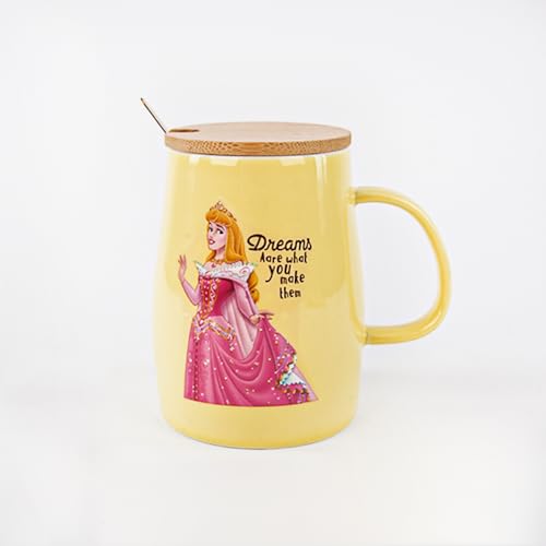 Generic - 360 Degree Porcelain Cup with Spoon and Wooden Lid, Yellow