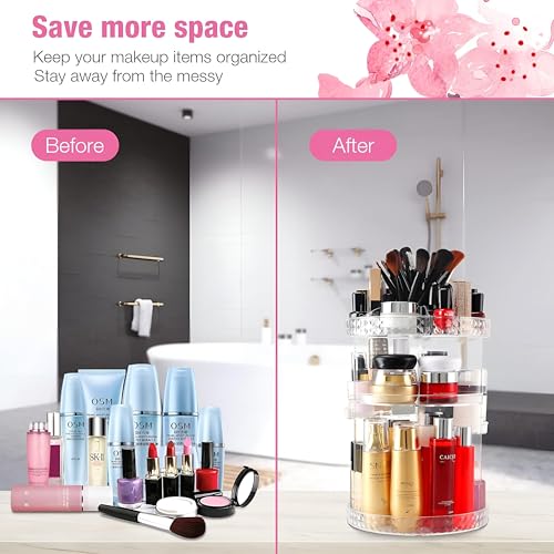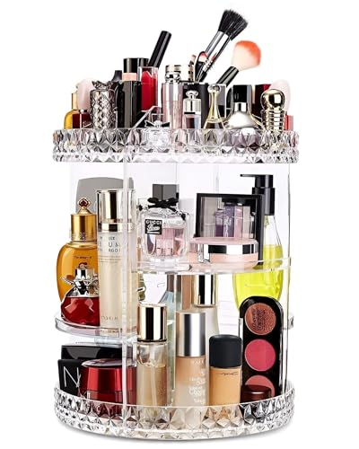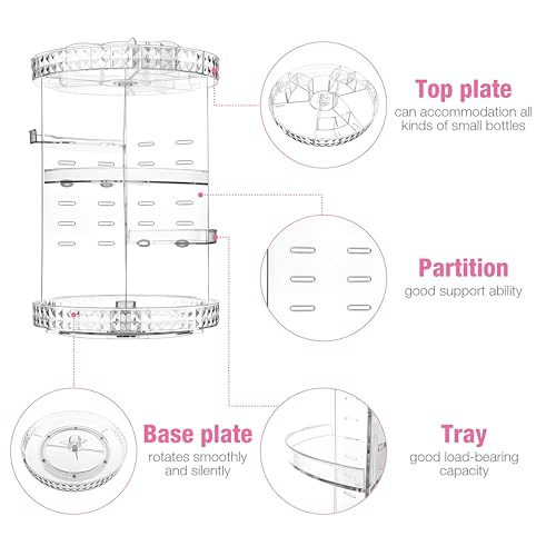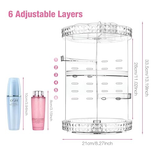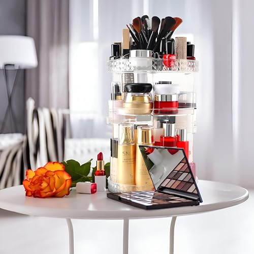 Generic - 360 Degree Rotating Clear Makeup Organizer with Height Adjustable Trays for Perfume and Cosmetics - Ideal Storage Holder for Bathroom, Bedroom, Closet, Vanity - Simplify Your Makeup Routine Today