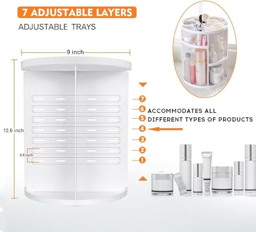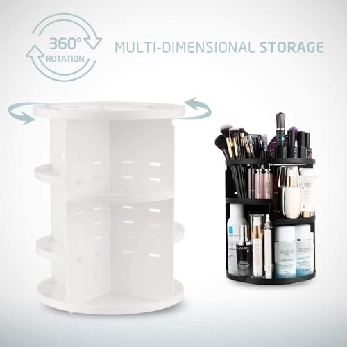Generic - 360 Degree Rotating Cosmetic Storage Organizer – Large Capacity Rotating Makeup Organizer with Adjustable Shelves – for Cosmetics, Skincare, Brushes (White)