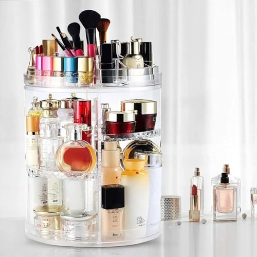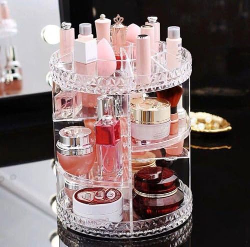 Generic - منظم مكياج دوار شفاف ثلاثي الأدوار بتصميم فاخر 360 درجة حجم جامبو GH