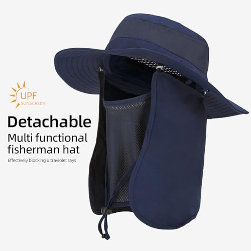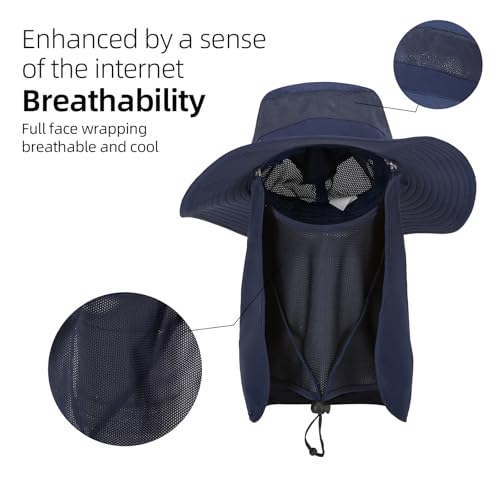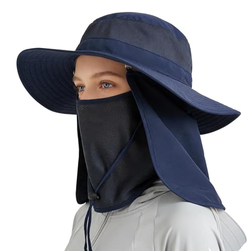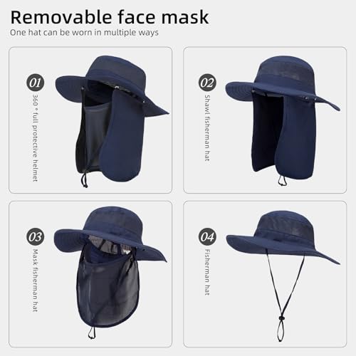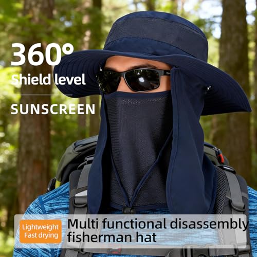 SILOZHEY - قبعة باكيت حماية 360 درجة مع قناع وجه قابل للفصل ورداء للرقبة - قبعة شمس بعامل حماية من الاشعة فوق البنفسجية 50+، شبكة جيدة التهوية للاستخدام الخارجي
