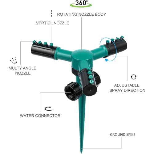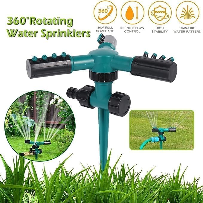 Plan A - 360° Rotating Automatic Water Sprinkler with Triple Holes for Large Areas Garden and Yard - Rotating Plant Watering System for Integrated Irrigation and Air Cooling