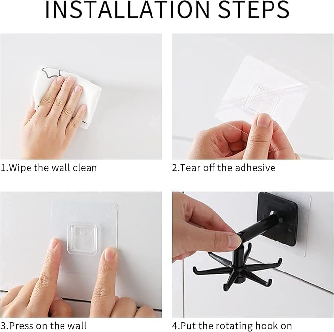 Generic - 360° Rotating Folding Hook, 360° Rotating Folding Wall Hook, 180 Degree Self-Adhesive Hook, Vertical Folding Hook, for Home, Bathroom, Kitchen