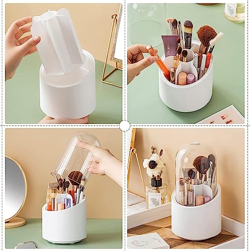 Spaceshoop - 360° Rotating Makeup Brush Holder with Dust Cover, 24cm Height, Storage Organizer for Cosmetics (Multicolor)