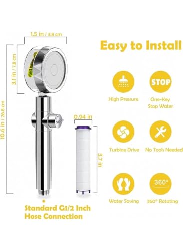 generic - 360° Rotating Turbo Fan Shower Head – Water-Saving Detachable Silver Shower Head | High-Pressure Hydro Jet Design for Home & Hotel Use | Adjustable Spray & Easy Installation