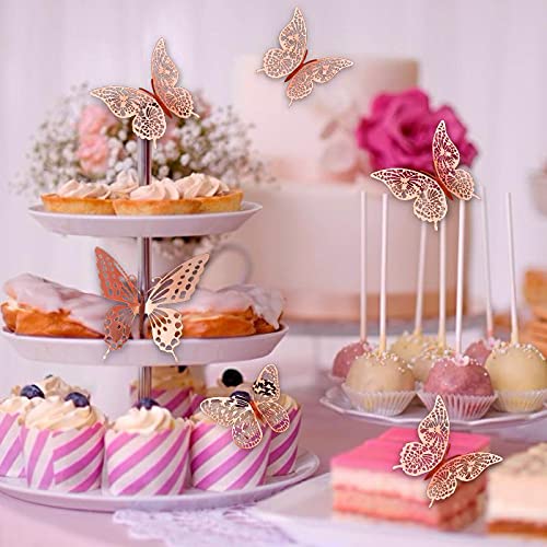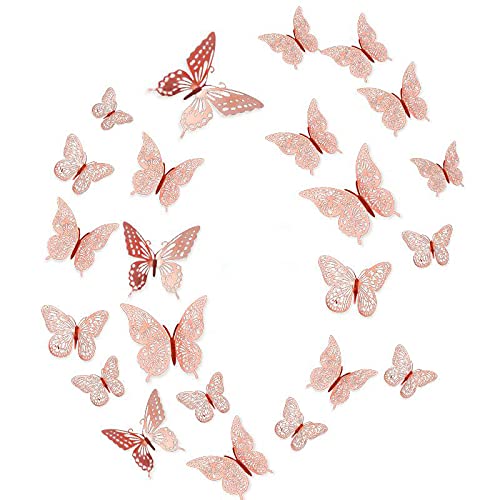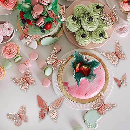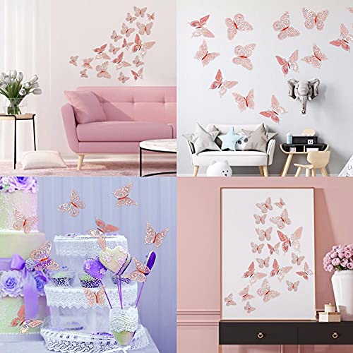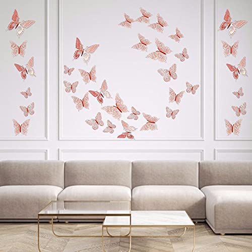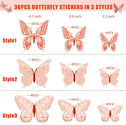 TMSJZF - 36pcs 3D Butterfly Wall Stickers 3 Styles 3 Sizes Removable Metallic Wall Decals Fridge Sticker Room Mural Decoration for Kids Bedroom Nursery Classroom Party Wedding Decor DIY Gift (Rose Gold)